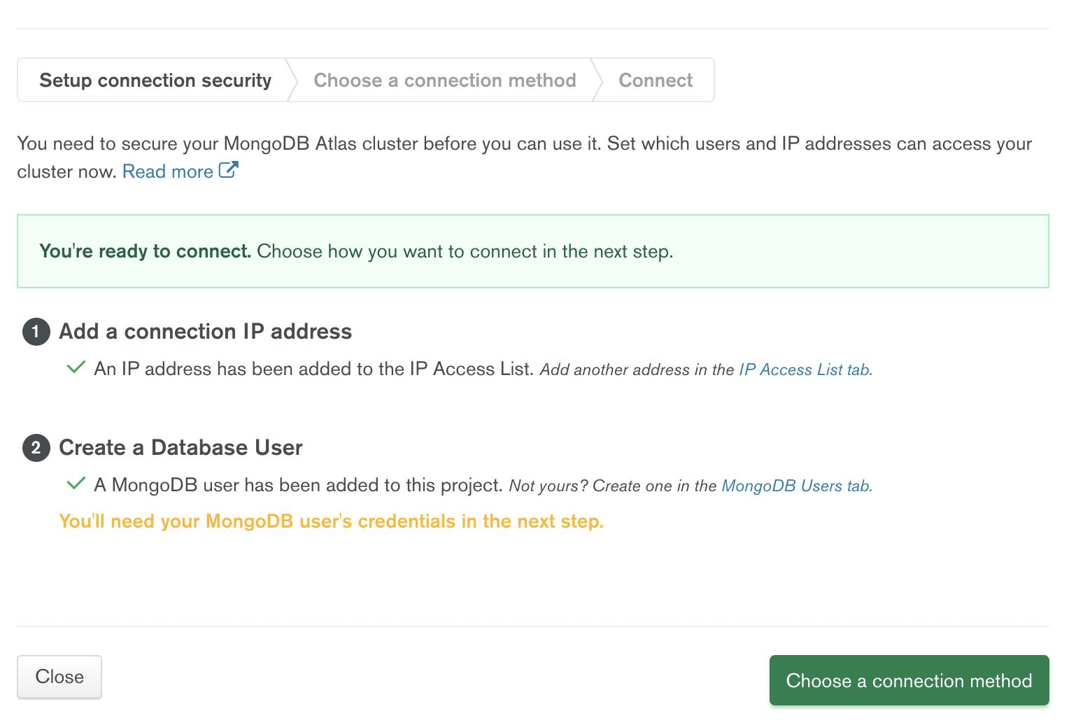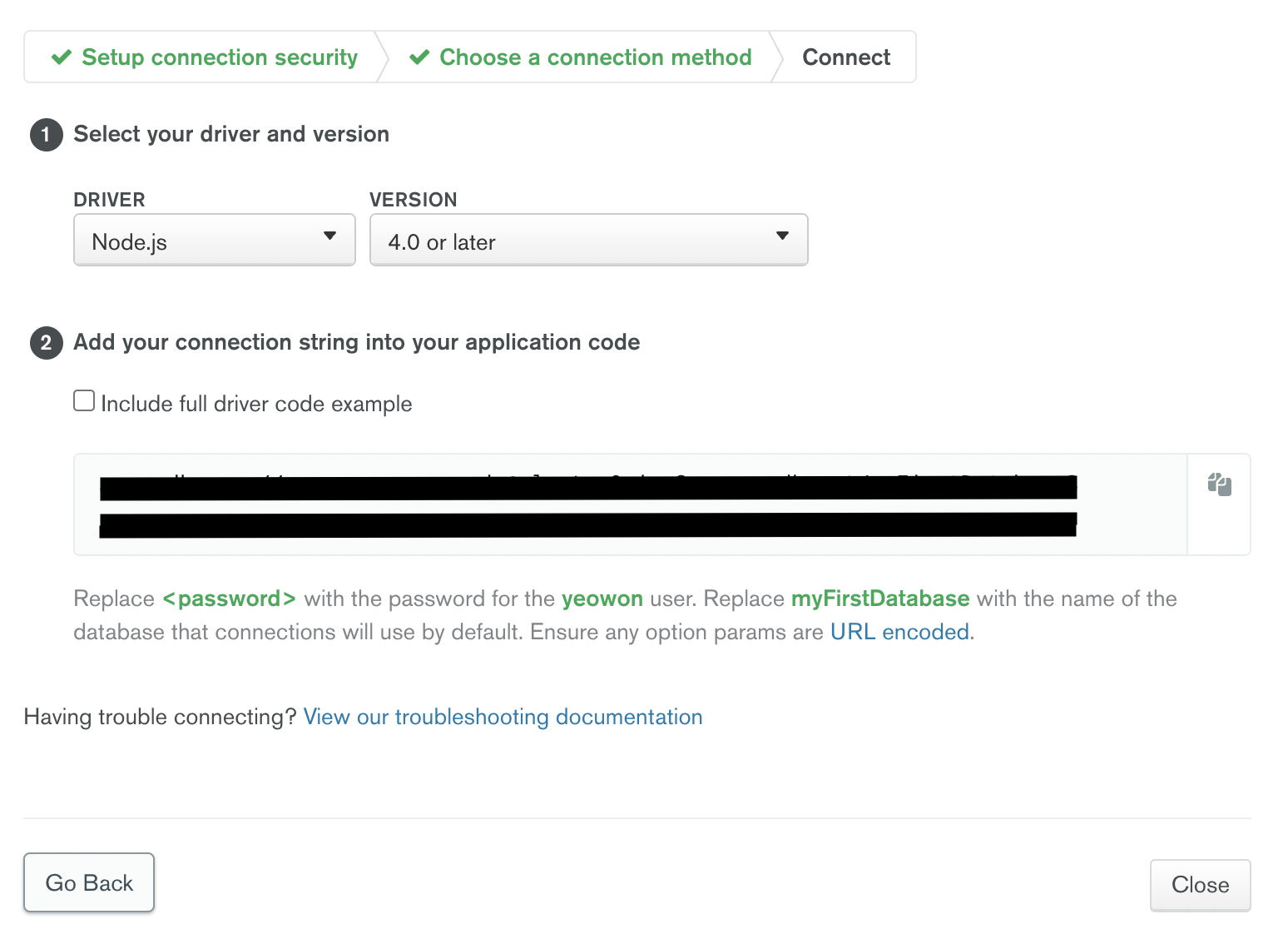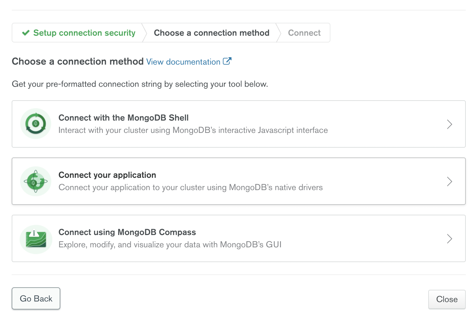 Choose aconnection method 클릭 후 Connect your application 클릭해서 넘어가기
